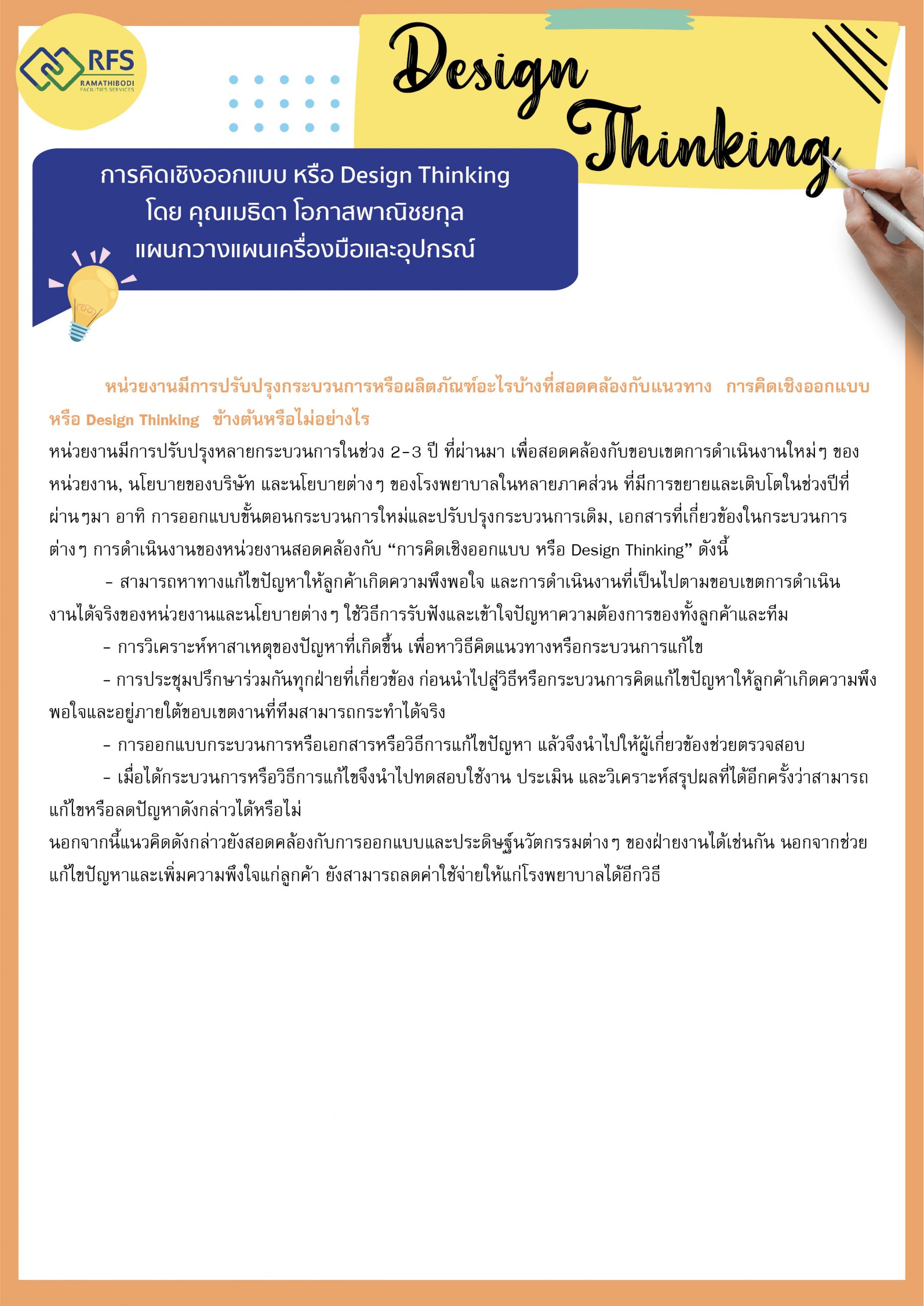 5. การคิดเชิงออกแบบ หรือ Design Thinking โดย คุณเมธิดา โอภาสพาณิชยกุล  แผนกวางแผนเครื่องมือและอุปกรณ์