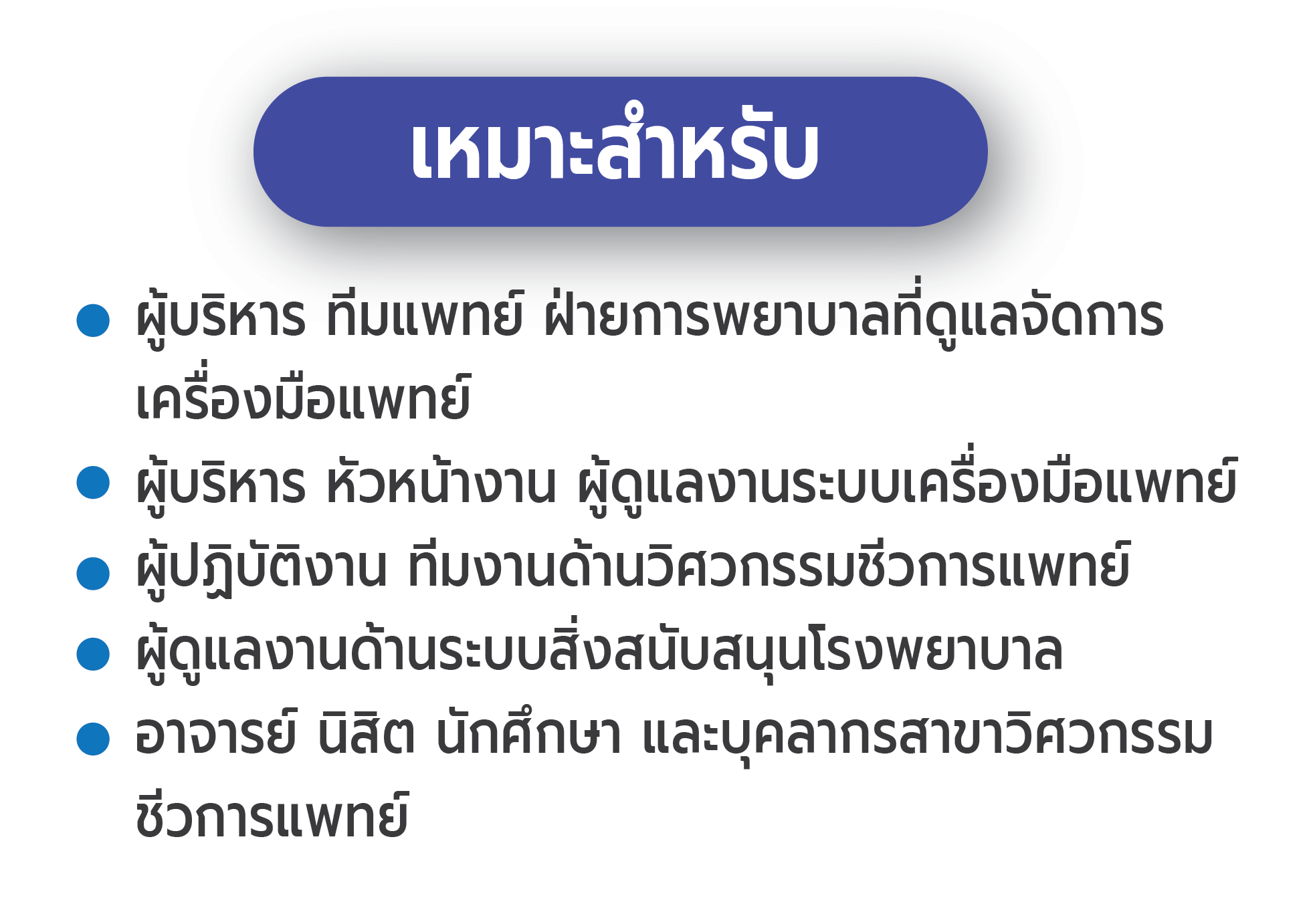 เคยสงสัยไหม? ทำอย่างไรให้การบริหารเครื่องมือแพทย์ในโรงพยาบาลมีประสิทธิภาพสูงสุด ลดความเสี่ยงและคุ้มค่าต่อการลงทุนอย่างยั่งยืน เครื่องมือแพทย์ทุกเครื่องได้ทำการสอบเทียบค่ามาตรฐานตามกำหนดเวลามีการวางแผนงบประมาณจัดหาเครื่องมือแพทย์ทดแทน ฯลฯ