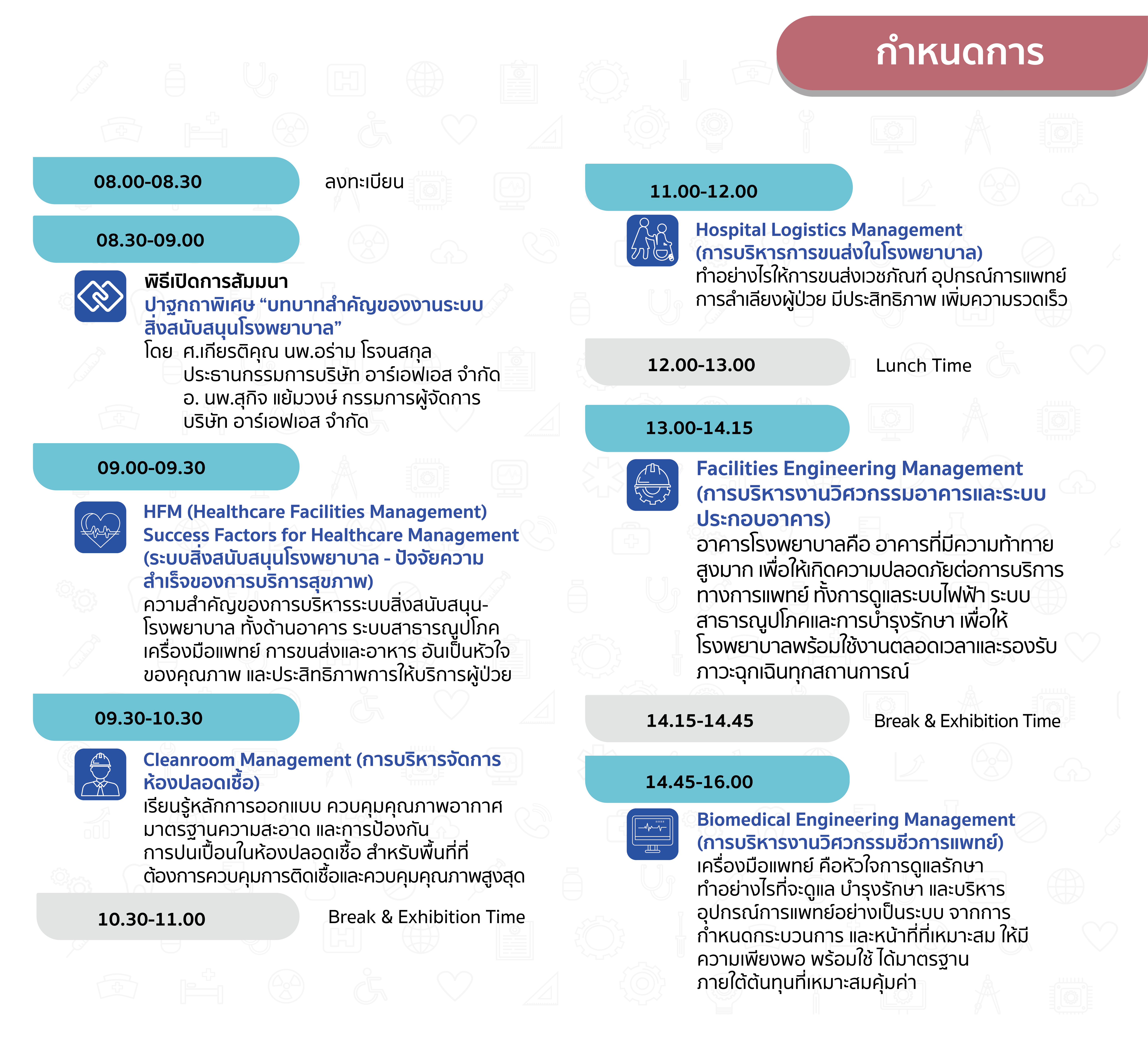 และด้วยประสบการณ์ของบุคลากรที่สั่งสมมา ประกอบกับปัจจุบันโรงพยาบาลต่างๆ ตระหนักเห็นถึงประโยชน์ของการสร้างระบบ HFM ที่สามารถช่วยยกระดับงานด้านสาธารณสุขได้อย่างเป็นรูปธรรม ในปี 2569 บริษัทฯ จึงกำหนดให้จัดสัมมนาในรูปแบบออกสู่ภูมิภาค เพื่อเป็นการเผยแพร่องค์ความรู้แบบเข้าถึงโรงพยาบาลอย่างแท้จริง